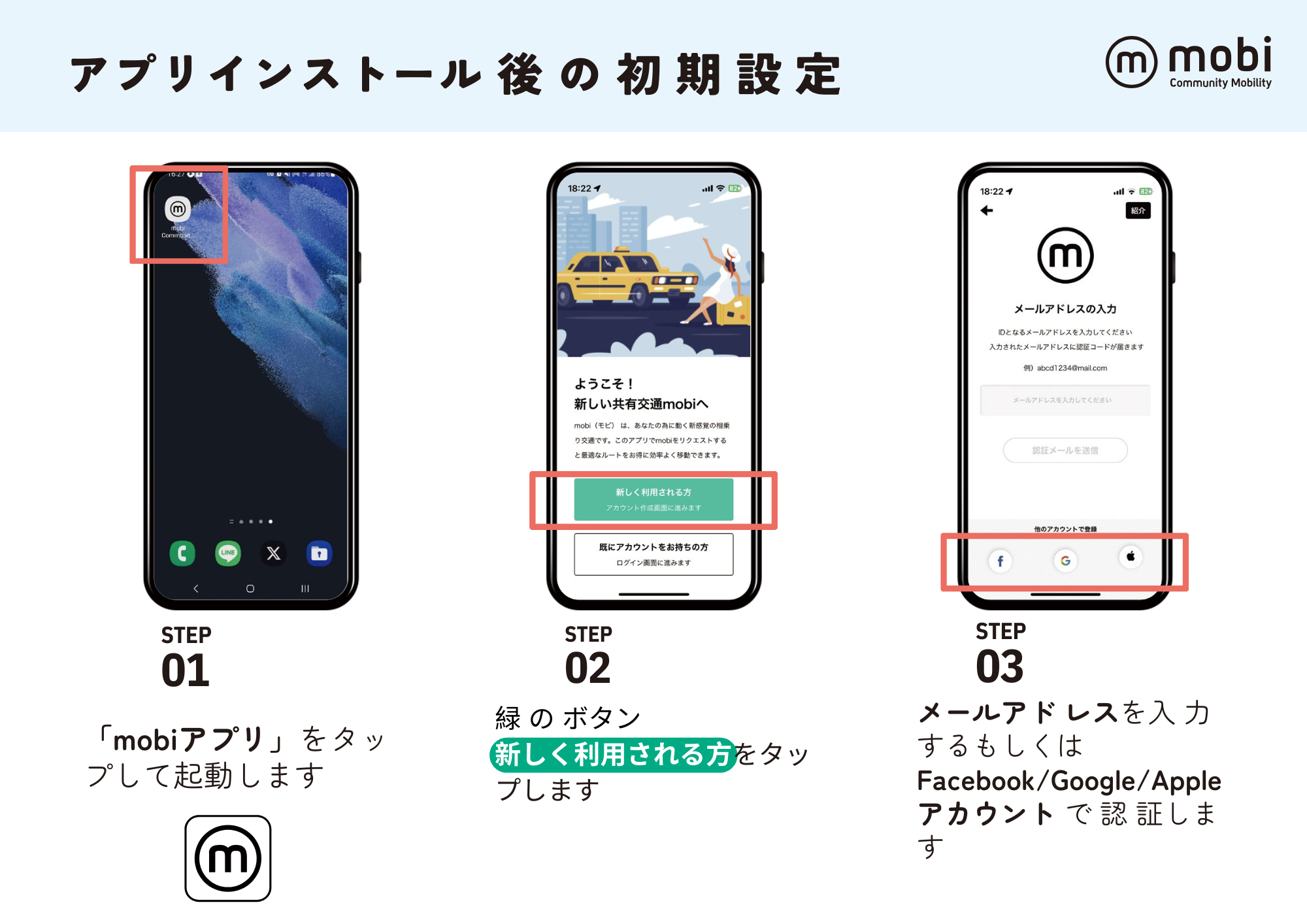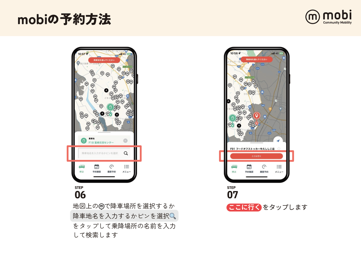 「mobi」は専用アプリから配車予約ができるサービスです。