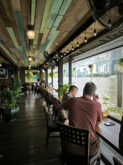 人気のカウンター席は、แม่น้ำเจ้าพระยา (Chao Phraya/チャオプラヤー川) の目の前!